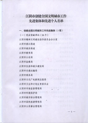 全國文明城市,是一個(gè)城市最有價(jià)值的品牌,是一座城市的最高榮譽(yù),創(chuàng)建全國文明城市是優(yōu)化經(jīng)濟(jì)發(fā)展環(huán)境,營造健康、文明、向上的良好社會(huì)風(fēng)尚的重要途徑,也是提高公民文明素質(zhì)、滿足人民群眾不斷增長的精神文化需要,作為江陰城市市政基礎(chǔ)設(shè)施建設(shè)的主力軍之一,公司高度重視文明城市創(chuàng)建工作,緊緊圍繞上級(jí)主管提出的創(chuàng)建文明城市的目標(biāo)任務(wù)和工作要求,切實(shí)加強(qiáng)領(lǐng)導(dǎo),明確目標(biāo),落實(shí)措施,責(zé)任到位,扎扎實(shí)實(shí)開展文明創(chuàng)建活動(dòng),樹優(yōu)良作風(fēng)、抓優(yōu)質(zhì)服務(wù)、創(chuàng)優(yōu)美環(huán)境、樹文明形象,取得了明顯成效。